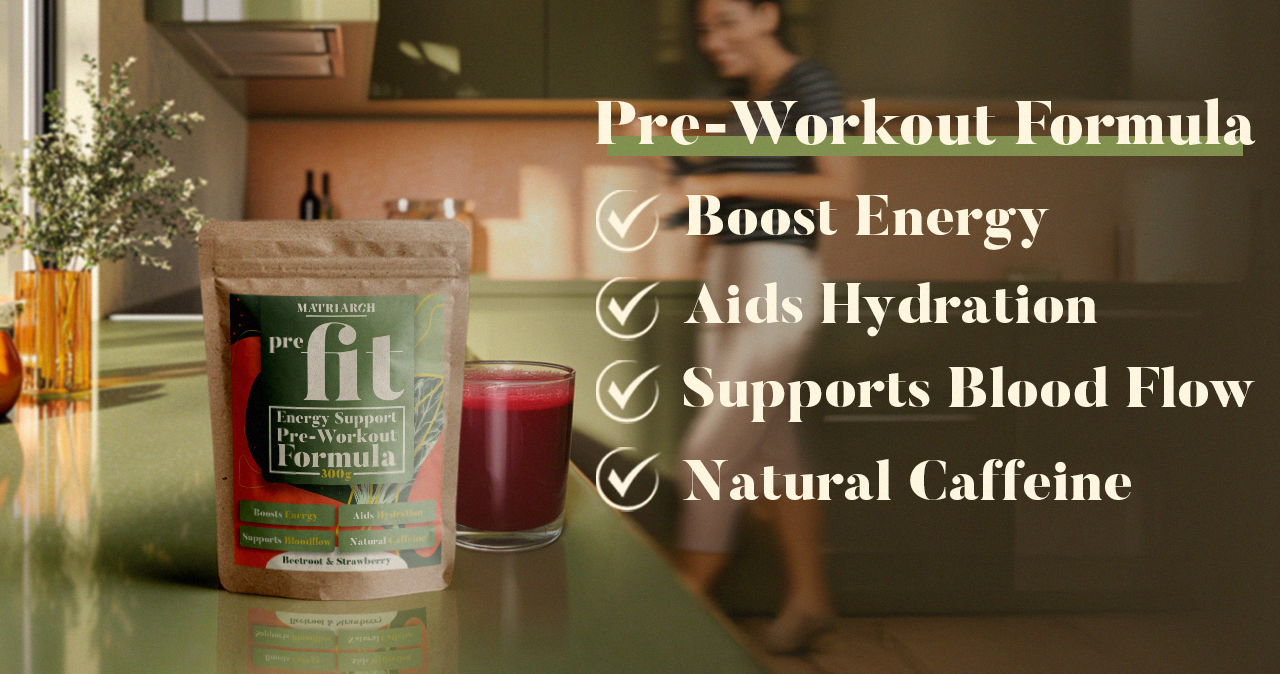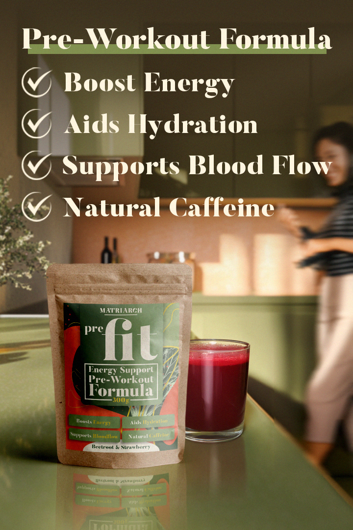 Pre Fit is specially formulated for older adults. It features beetroot extract to support blood flow, guarana for natural energy and Himalayan Salt to aid hydration.