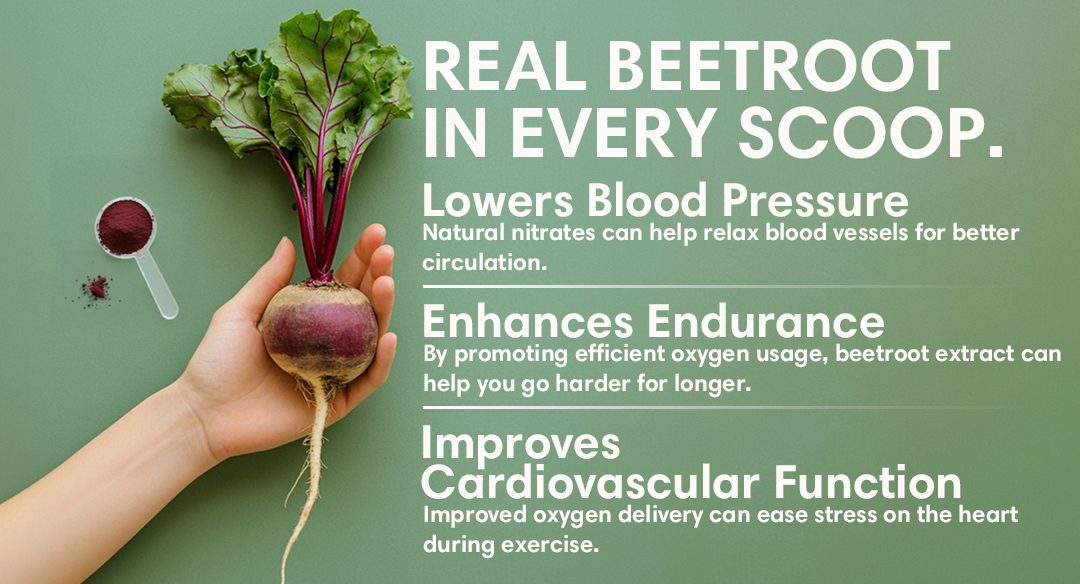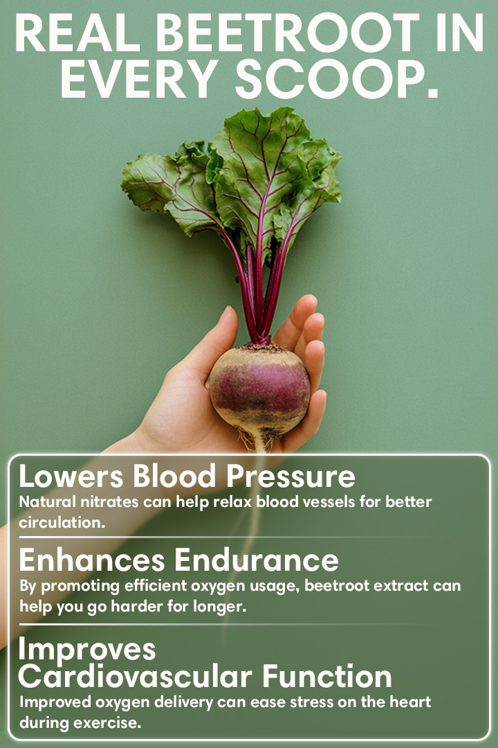 Rich in nitrates, beetroot extract naturally enhances blood flow and oxygen delivery to muscle. Reducing fatigue and supporting cardiovascular health.